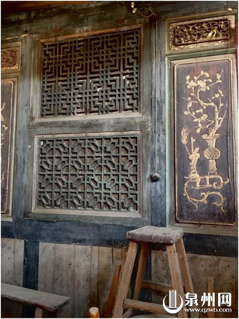 南侧的木构古厝庄重大方,窗棂雕花保存完好。
