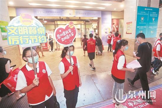16日晚,“文明创城 志愿同行——拒绝舌尖上的浪费”公益宣传活动在泉州商城广场举行。来自泉州五中的20多位学生是这场公益活动的主力志愿者。记者了解到,目前我市从中小学到大学,各个校园每年都开展各种以“光盘行动”为主题的活动,餐桌文明已成校园的一道风景线。