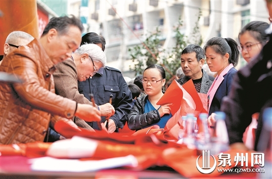 除了丰泽、鲤城、洛江等中心市区,今年的活动也将走进安溪、德化、永春、惠安、泉港、晋江、南安、石狮、泉州开发区等县(市、区),共计14场,每场组织多名书法家为读者书写春联。活动将持续到2018年2月7日,每场为期半天,每天上午9点30分开始。我们为读者们精心准备了大对、小对、“福”字联等多种款式的春联1万副,欢迎市民到现场免费索取。