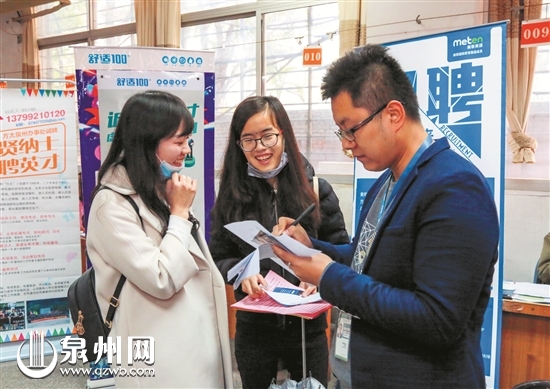 就读于龙岩学院国际经济与贸易专业的应届毕业生柳芸芸,这次跟同学专程到场求职,她们希望找到一份跟专业对口、工资待遇尚可的外贸岗位。与柳芸芸不同的是,先前在澳大利亚从事机电行业的求职者黄超,由于家庭方面的因素,今年打算回到泉州工作,他的求职意向是机械、航空、电子类型的岗位,“相比工资待遇,我希望企业有较好的发展前景和个人成长空间。”