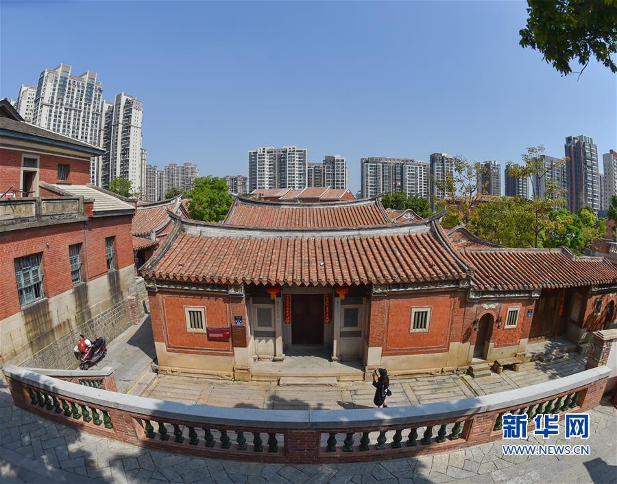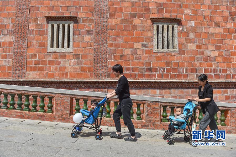 3月28日,一位来自辽宁的游客在福建省晋江市五店市传统街区一处红砖古厝前拍照。新华社记者 宋为伟摄