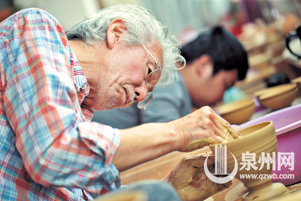泉州网4月12日讯(记者 陈小芬 潘登 文\图)“看着那通透、温润的德化白瓷作品,我被深深打动与震撼,所以我留下来了,而且还希望能在德化安度晚年。”昨日,满头银发的水出胜拿起他在德化创作的一件件建盏,向记者讲述他从日本远渡中国来到德化创业与生活的故事。