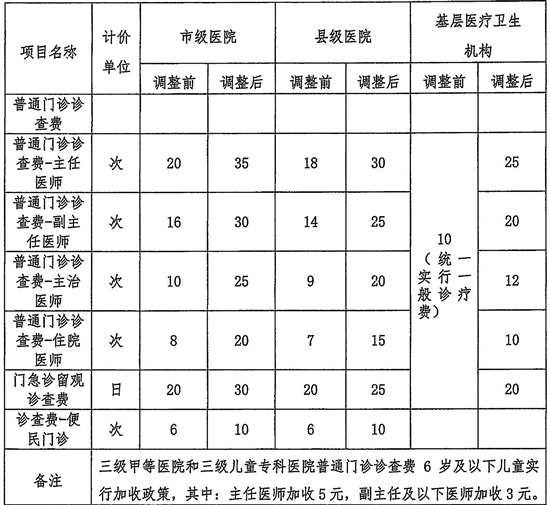 此次调整的范围包括公立医院普通门诊诊查费、门急诊留观诊查费、便民门诊诊查费等项目,同时取消基层医疗卫生机构(乡镇卫生院、社区卫生服务中心,不含村卫生所和社区卫生服务站,下同)一般诊疗费政策,设立诊查费、注射费。