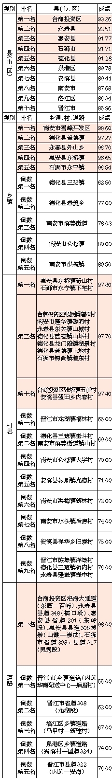 4月份,市城市管理综合考评中心抽评10个县(市、区)146个乡镇的347个村、103段道路及3个工业区环境卫生,主要成绩如下: