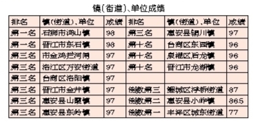 泉州网5月25日讯 (记者吴志明 通讯员郑培嵘)4月份,市城市管理综合考评中心对全市海岸带(近岸海域和海岸线向陆一侧200米的陆域)和晋江入海口至金鸡拦河闸上游100米的晋江河道环境卫生情况进行了考评。其中,在各县(市、区)、市级单位中,金鸡拦河闸管理处、洛江区并列第一名,丰泽区倒数第一。而从各镇(街道)、单位成绩来看,石狮市鸿山镇与晋江市东石镇夺魁,丰泽区城东街道以77分名列倒数第一、惠安县小岞镇倒数第二、鲤城区浮桥街道倒数第三。(具体成绩详见下图)
