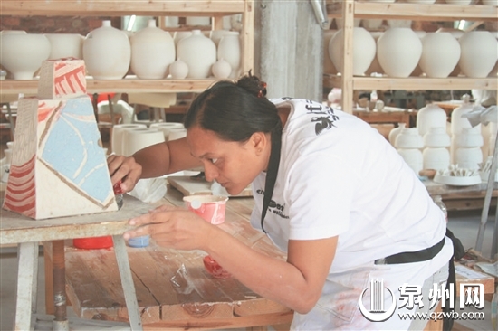 此外,陶艺村还吸引德化在外游子回流。曾文仲在福州等地从事陶艺多年,今年4月份才回归故乡德化,他说想在这里打造陶艺爱好者之家和实验创作基地。曾在欧美从事艺术装饰工作的吴金填,在这创建了国际陶艺交流中心,利用自己在国外广交的人脉,以及德化陶瓷文化的魅力,招徕欧美和日本陶艺家来这玩陶。(徐艺星 文/图)