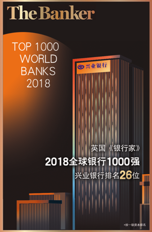 7月2日,英国《银行家》杂志公布“2018年全球银行1000强”榜单,兴业银行按一级资本排名第26位,按总资产排名第28位,均较上年提升2位,进一步巩固了全球银行30强的国际排位。