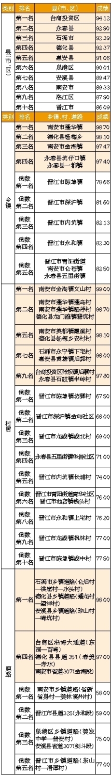 6月份,市城市管理综合考评中心抽评10个县(市、区)146个乡镇的325个村、105段道路及3个工业区环境卫生,主要成绩如下: