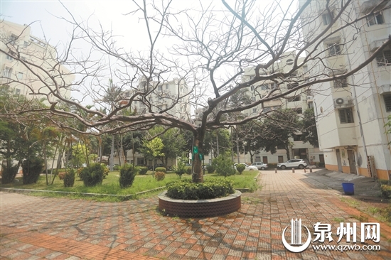 小区业委会副主任李国明说,凤凰树树龄已经有20多年了,当初小区建设时就已种下。一旁和它一起种的另一棵至今仍郁郁葱葱。开春时,业主发现这棵凤凰树没发芽,想是病了,便叫来园林工作人员看看。说是害虫病,要输液、喷水。大约两个月前,业委会出资3000多元,为老树治病,“输液”,铺设水管。现在树枝上还挂着几个“输液袋”,通过针打入树皮慢慢进入枝干。枝头旋转的洒水喷头,每天从下午5点左右开到夜里7点。这段时间天黑以前,总有小鸟飞上枝头,享受“甘霖”,时不时要抖擞一下身体,像是被晒了一天的身体冷不丁淋上水有点受不了似的,你追我赶,好不热闹。李国明说,下午6点是高峰期,多的时候能有六十来只,密密麻麻地在枝头上飞来飞去,跳来跳去。多数是山雀、麻雀,还有一些他也叫不出名字的小鸟,黑的白的都有,显得生机勃勃,趣味盎然。