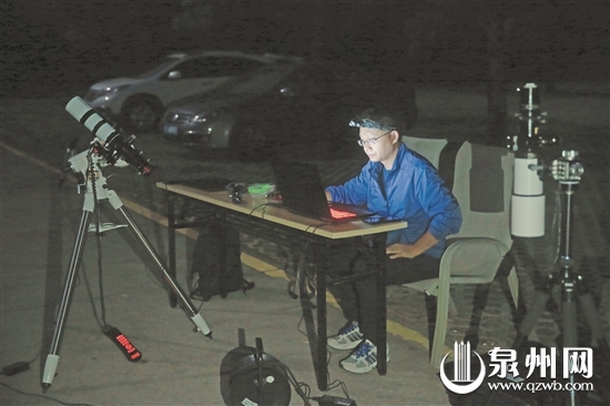 7月27日晚8时许,记者赶到天柱山顶时,泉州一中的师生们已经开始陆续架设观测设备。负责带队的陈华彪老师告诉记者,他们带来了多套专业天文望远设备,除了观测月全食和火星冲日,还将观测土星、星云、星座和其他天体,并举办两场天文观测与天文摄影讲座,所有观测设备和讲座都面向社会人员免费开放。