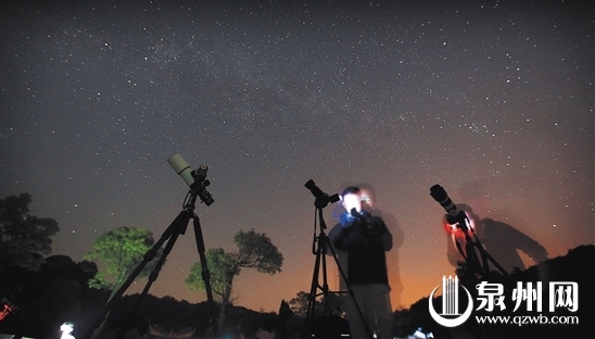 7月28日凌晨,本世纪持续时间最长的月全食在夜空上演。当晚与“红月亮”联袂登台的,还有难得一遇的火星大冲。7月27日晚,早报记者和泉州一中天文社数十位师生一同来到海拔1000余米的南安天柱山顶,共同见证这场全球瞩目的“星月童话”。