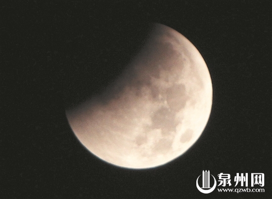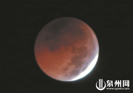 28日凌晨2:24,“天狗食月”开始,月亮左上方逐渐出现阴影,观测人群中不时传出惊叹声和相机快门声。3:40许,食既接近尾声,肉眼所见,整个月亮基本已被阴影覆盖。4:20左右,食甚,月亮成为一个在夜空中微微可见的“红月亮”。食甚阶段约一个小时,肉眼所见甚至一度不及旁边的火星亮眼。这段时间,除了拍摄“红月亮”外,大家纷纷把镜头对准了繁星闪耀的夜空,银河、北极星、星云、流星,都如愿被定格在画面中。