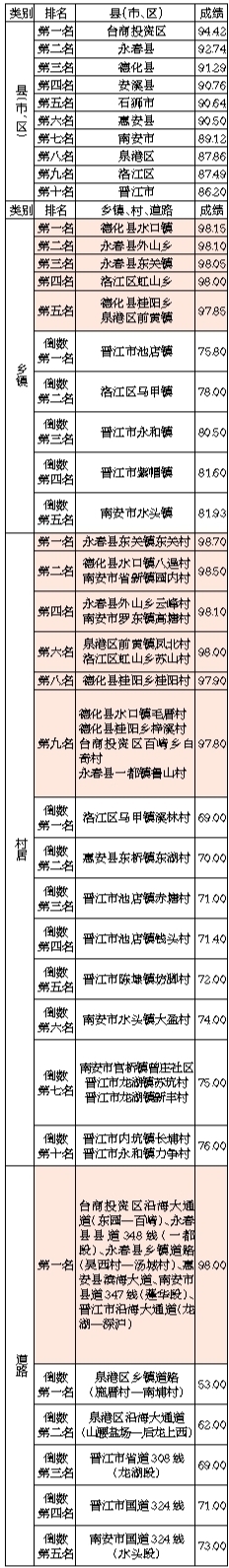 7月份,市城市管理综合考评中心抽评10个县(市、区)146个乡镇的324个村、105段道路及3个工业区环境卫生,主要成绩如下: