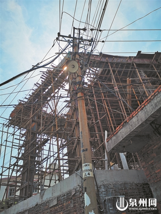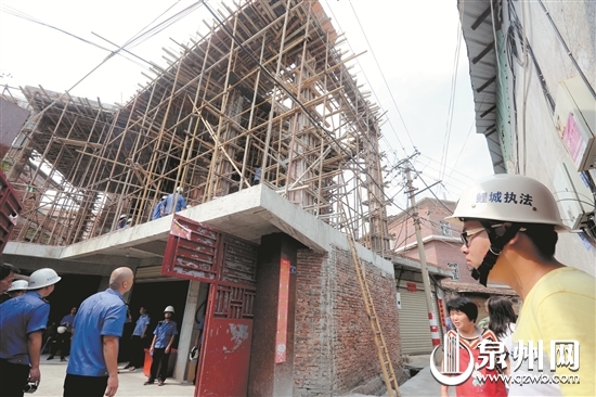 在二层高压线边直接挑高6米进行抢建,在鲤城区常泰街道树兜社区楼下工业区路9号,违建业主置周边群众和工人的生命安全于不顾,无视执法人员停建通知,在下半夜抢建。昨日,鲤城区执法局和街道办事处以及相关部门密切联动协作,依法对这处300多平方米的违建进行摧毁式拆除。