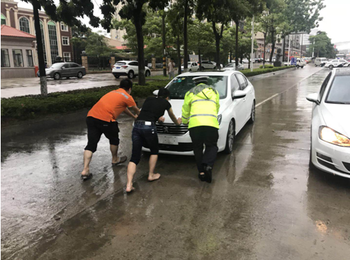 8月15日下午,惠安县黄塘镇区突降暴雨,不少车辆行驶至严重积水的低洼路段时,在水中抛锚。平安产险惠安支公司查勘员刘哲伦接到客户报案后,第一时间迅速赶到现场,发现客户爱车被困在水中,为了防止二次启动致发动机进水,车子此时已熄火。查勘员刘哲伦二话不说,直接下车冒着雨帮客户推车,直至车辆抵达安全地带,并迅速帮助客户与4S店联系排查维修事宜,消除了客户的后顾之忧。此时由于仍有不少车辆因为路段积水,被迫停至路中央,来往车辆绕行或减速都存在极大的水淹熄火风险,刘哲伦冒着大雨协助交警先后把十几辆车全部推送到安全地带,使堵塞的道路慢慢恢复了畅通。