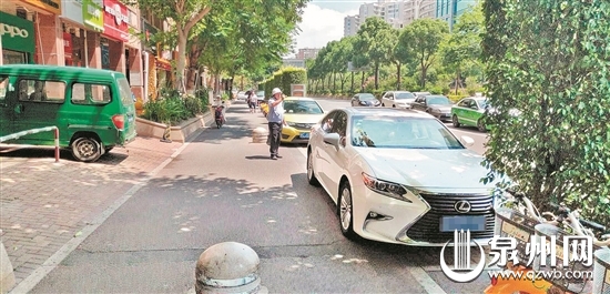 昨日上午,丰泽交警大队在中心市区刺桐路、田安路、丰泽街、津淮街、东湖街等重点路段开展违停整治。在刺桐路,非机动车道路口原有的石墩拆除后,一些司机将车辆停在非机动车道上,导致电动车、自行车以及行人通行受阻。在发现车辆违停后,执勤人员依法在违停车辆上粘贴违法停车告知书,并通知车主及时挪车,对违法行为进行纠正。