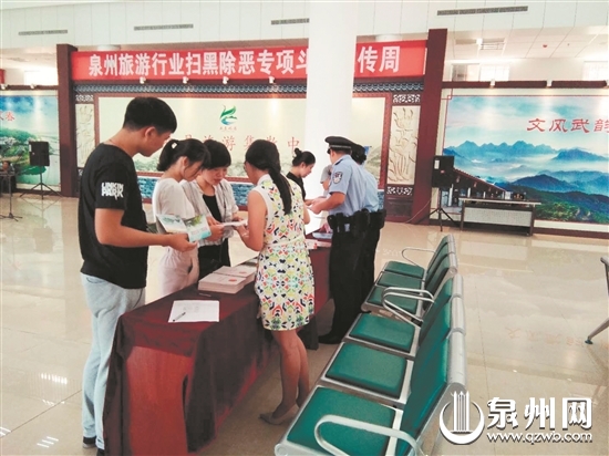 据介绍,市旅发委开展旅游行业扫黑除恶专项斗争宣传周活动,现场接受游客对泉州市旅游行业黑恶乱现象的咨询、投诉、举报,向在场的游客发放扫黑除恶宣传资料,走访游客,征求意见建议。市旅发委将根据收集的反映举报等信息一一甄别与排查,及时将涉及旅游行业黑恶的疑似线索移送公安部门侦查办理,净化泉州市旅游市场。