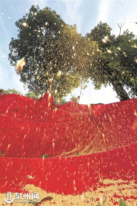 23日是我国首个中国农民丰收节。在这个收获的季节里,丰收是农村这片广袤土地上共同的风景。图为日前在安溪县虎邱镇芳亭村,村民在打收桂花。芳亭村有“打桂花”的习俗,寓意吉祥和丰收,桂花经过加工可以制成桂花茶、桂花糕、桂花酒等产品。 (张九强 摄)