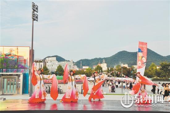 中秋节前夕,泉州市文化艺术团在韩国光州金大中会展中心举行文化演出,泉州师范学院音乐与舞蹈学院、福建省梨园戏传承中心、泉州市南音传承中心、泉州市提线木偶戏传承保护中心、泉州少林寺武僧团等携手献演了一场精彩的节目。演出节目有舞蹈《百花争艳》、梨园戏《闽南听雨》、南少林武术《少林雄风》、演奏《琵琶演奏茉莉花》等,最后歌曲《蓝蓝泉州湾》更是掀起高潮,精彩的演出受到韩国人民的热烈欢迎,演出现场掌声雷动。韩国艺术团也精心准备了《长笛独奏》等节目参与互动交流。在韩进行多场演出后,泉州市文化艺术团还赴日本交流演出,演出到27日结束。