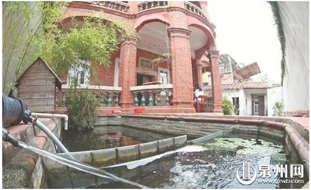 听桐别墅面南背北,为两层砖木石混合结构,楼前修建一个风水池,还有点缀和防火之用。