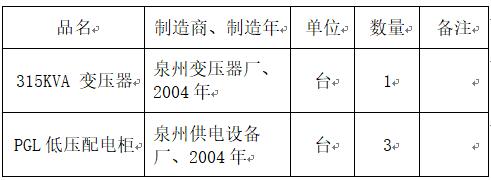 泉州市第三实验小学因发展需要,配电室进行改造增容,拆下以下设备拟转让: