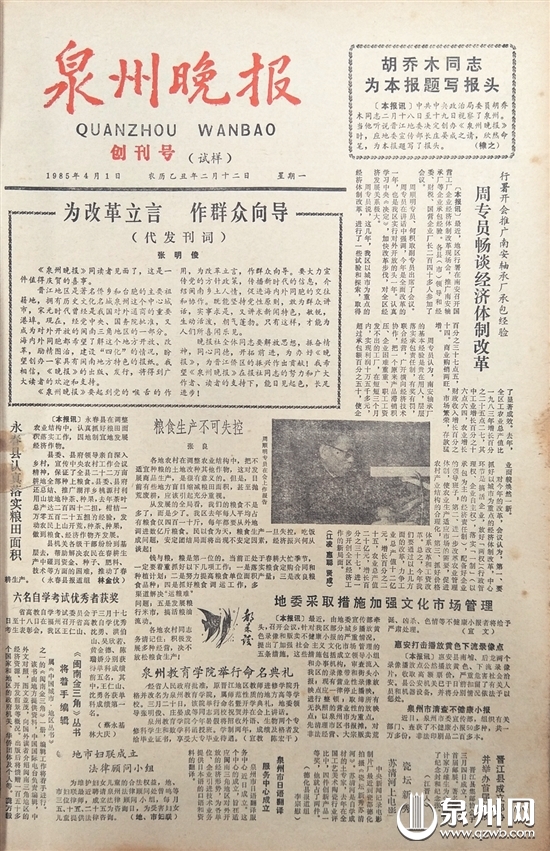 许多年轻人或许不知道,在1969年4月1日原中共晋江地委机关报《泉州报》停刊后,泉州一直没有地方机关报。直到1985年4月1日,时隔16年后《泉州晚报》创刊号推出,才结束多年没有报纸的历史。