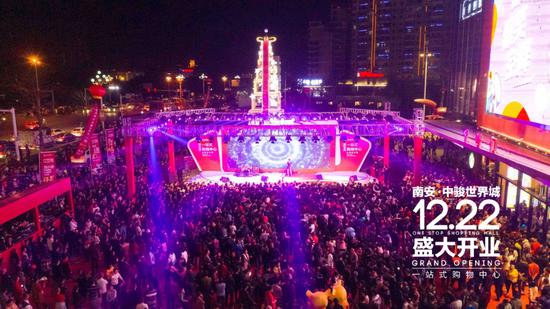 12月22日,南安首座全客层、全业态、全自持的一站式购物中心——南安中骏世界城盛大开业。老牌明星闽南语歌王袁小迪、草根明星66乐团&汤乐队组成全明星阵容,为南安中骏世界城开业助阵。开业当天,好看好玩的活动、暖心贴心的福利、高颜值高品质的品牌吸引了南安乃至周边地区的32万人潮,全天营业额突破700万元。