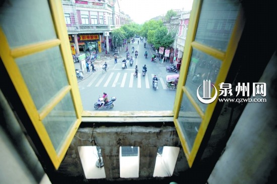 钟楼二楼窗户外的中山路好风景。(庄丽祥 摄)