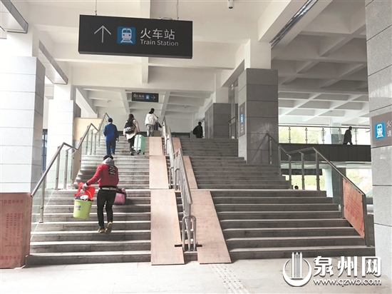 昨日中午,记者在公交站候客区看到,墙上新增3处大型公交线路指示牌,方便乘客查找公交线路。而在公交车站下客区通往火车站进站口的楼梯连接处,相关人员已用木板填平靠近中间的楼梯,将楼梯改进为无障碍通道。记者看到,这对拉一个行李箱的乘客来说,确实是提供了一定程度的便利。不过,一些提着两大箱行李的乘客,他们往往不使用。一位乘客表示,拉着两箱行李并不适合用无障碍的木板,这个无障碍通道形同虚设。