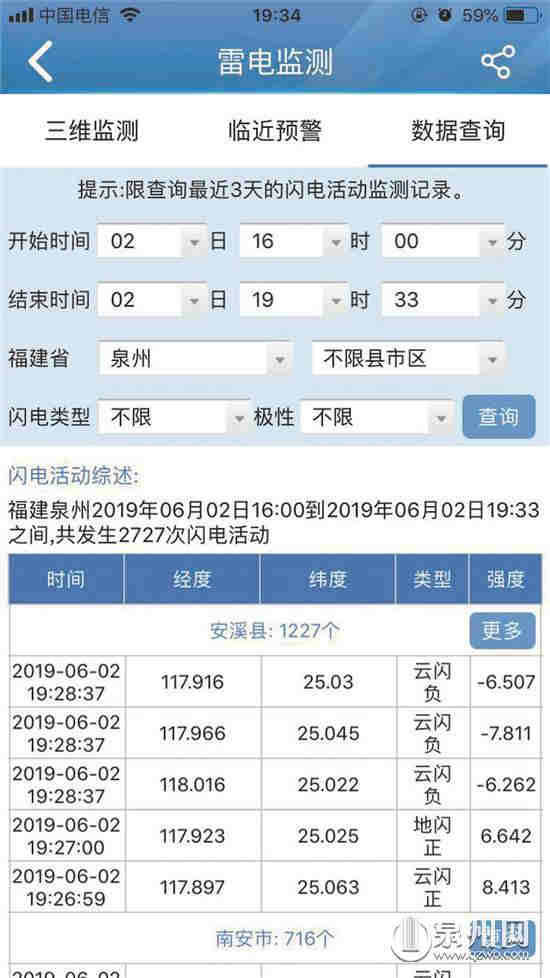 泉州网6月3日讯(记者 吴志明 陈起拓 文/图)闷热、暴雨、雷电,近期泉州的天气任性爱耍脾气,连日来,雷雨天气接连上演,刺眼的闪电划破天际。昨日16时到19时30分,3个半小时之内,我市竟记录到了2727次闪电。不少市民有疑问,雷电如此迅猛,如何监测其行踪?什么情况下遭遇雷击的风险最大?市民平时应该如何防雷?对此,记者采访市气象局防雷中心,带你摸清“雷神”的怪脾气。