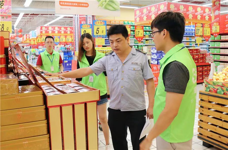 执法人员对辖区几家大型超市及部分食品店进行抽检,重点检查预包装月饼食品名称、配料、净含量、生产者名称及地址、生产日期等内容是否完善;散装月饼标识是否清晰,销售单位是否制作散装食品公示牌,供货商许可证材料是否齐全等。