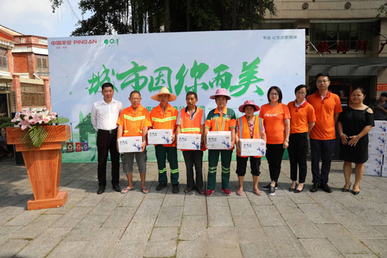 此次活动,平安集团驻泉各专业公司为东海街道900余名环卫工送上关爱。东海街道办事处代表致辞,感谢平安集团驻泉各单位及各界爱心企业对环卫工群体的高度关注和环卫工作的认可。平安产险福建分公司团体业务分部总监吴章熊经理代表平安集团驻泉专业公司向战高温、斗酷暑的一线环卫工人致以崇高的敬意和亲切的慰问。活动中,平安集团驻泉各专业公司代表、志愿者与环卫工展开了别开生面的“垃圾分类PK赛”,通过有趣的游戏,提高大家对垃圾分类的认识。