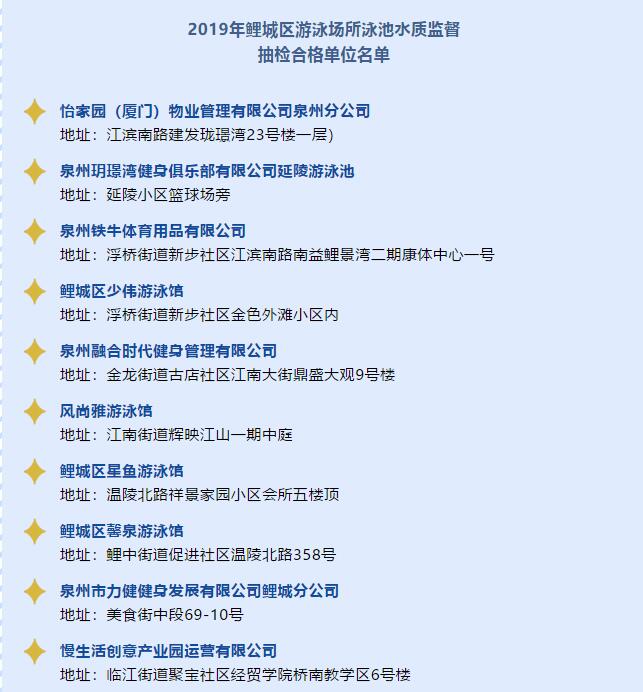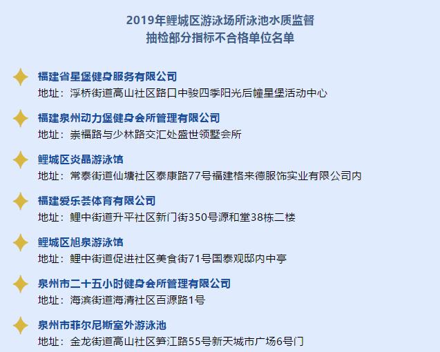 日前,鲤城区卫生监督所对辖区内17家游泳场所进行检测,就泳池水细菌总数、大肠菌群、尿素、浑浊度、PH值、游离性余氯、浸脚池水余氯等项目进行检测。其中10家合格,合格率58.82%。