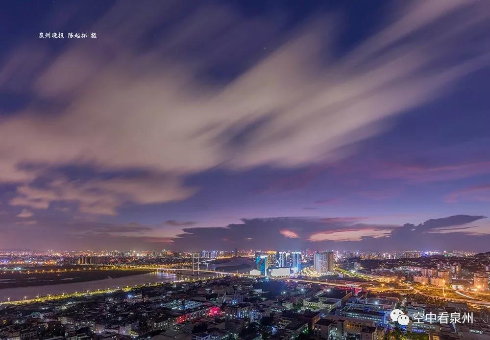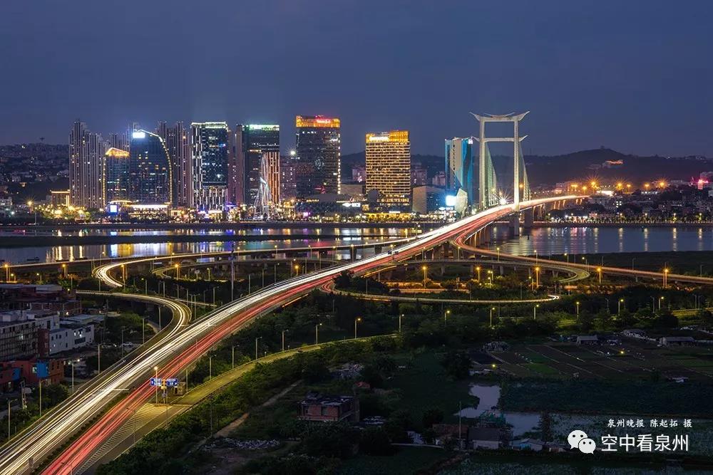 大桥是晋江母亲河上的地标。在夜幕降临时,来一张长条的全景图,一定可以拍到许多人的家。