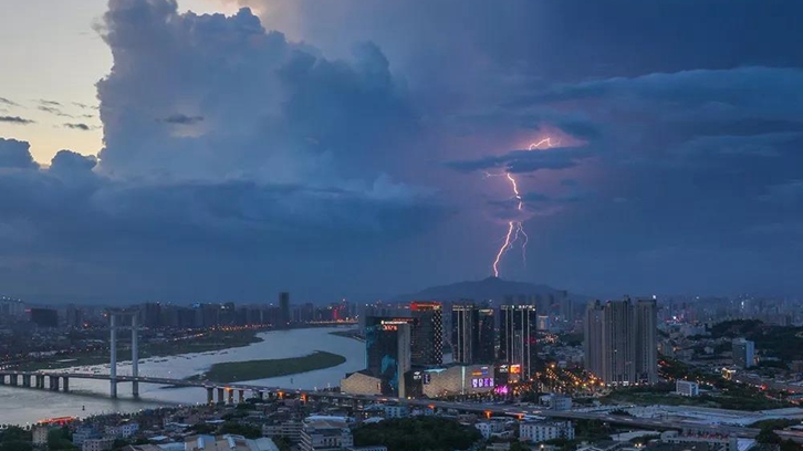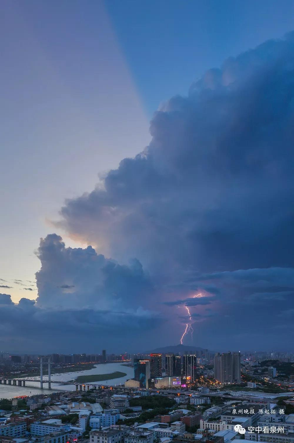 有的时候,运气爆棚,不仅有闪电,竟然还有些许霞光。