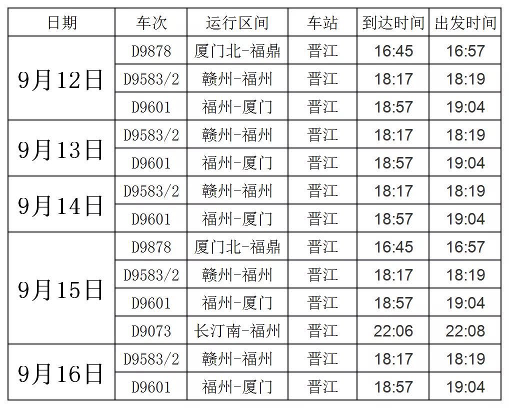 晋江站加开情况:
