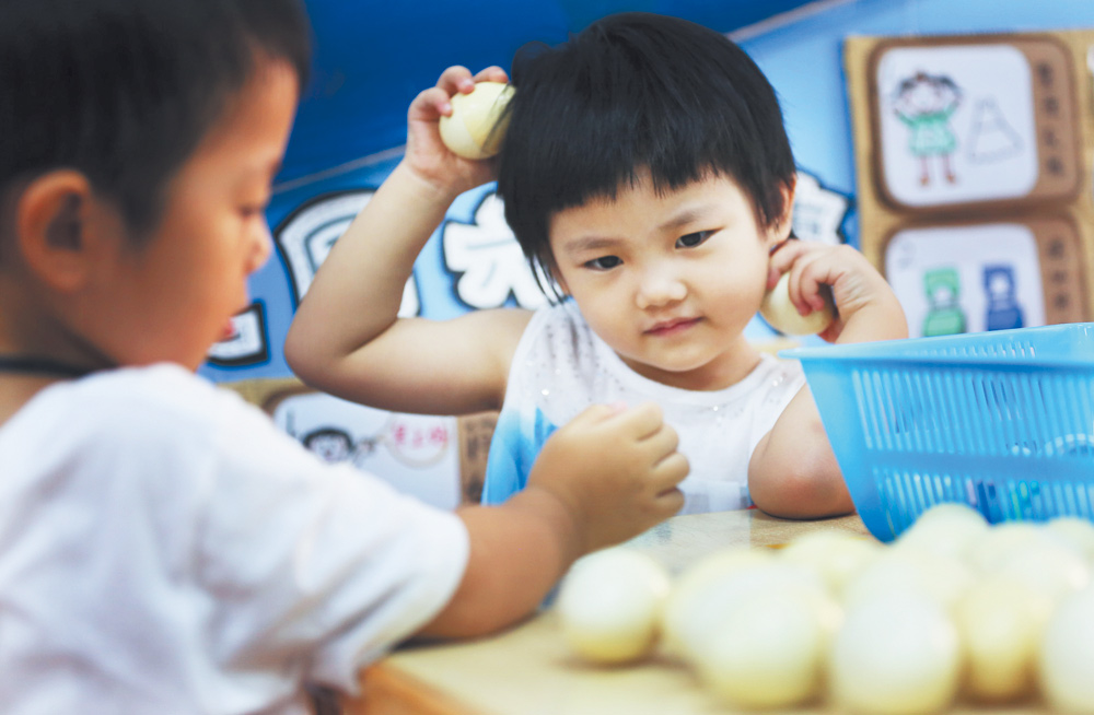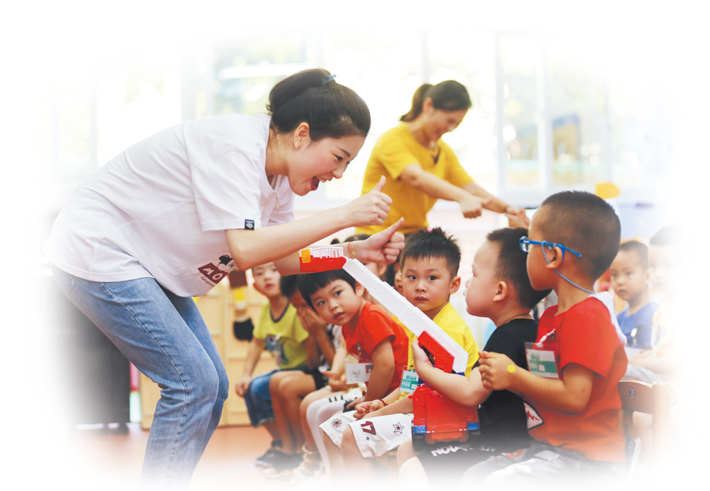 在老师们营造的温柔与耐心的海洋里,孩子们渐入佳境,开始学习更多知识。“我们来玩一个游戏,老师叫到你的名字,你就站起来高举右手说‘到’,看看谁说得最快、最响亮。游戏玩得好的同学,老师一会会奖励小贴纸哟!”“好!”对于小小年纪的孩子们来说,守规矩似乎是一件非常难以理解的事情,为了让“规矩”变得不那么生硬难懂,幼儿园的老师们用玩游戏的方式让孩子们学会了点名、调整坐姿等规矩。