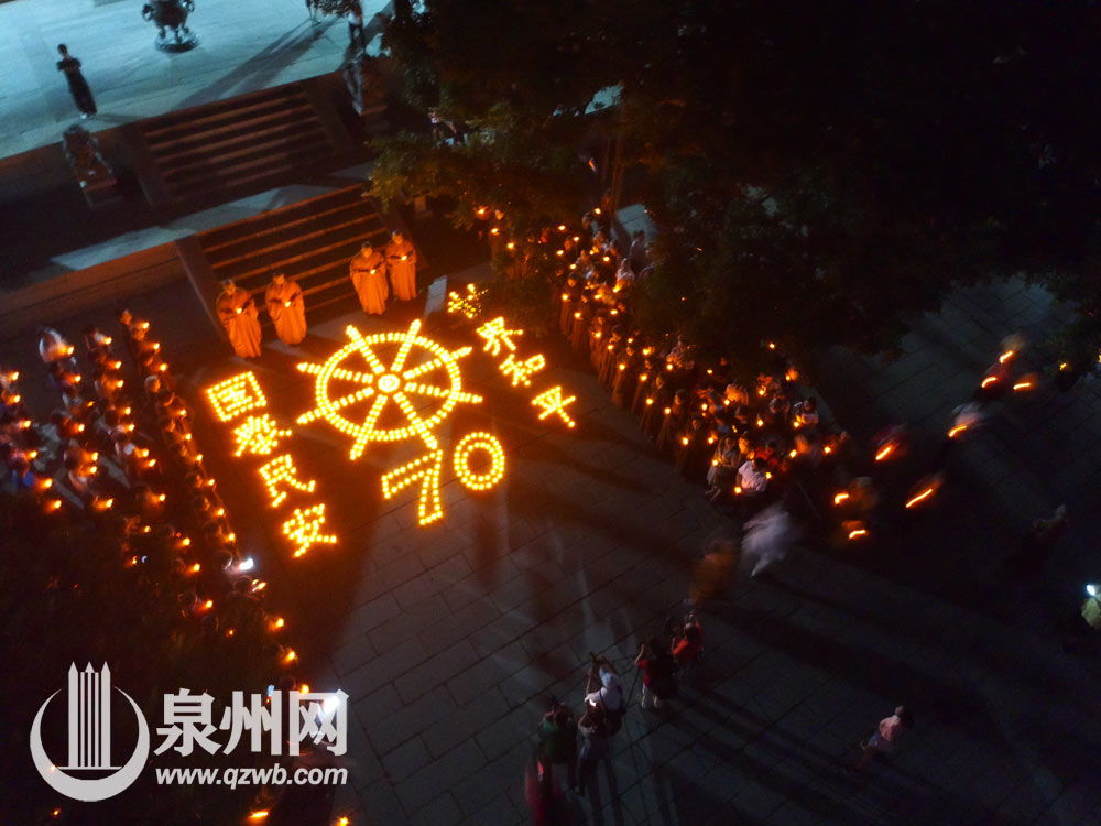 13日晚,泉州少林寺举办“喜迎中秋·献礼新中国成立70周年”活动,与广大市民一同庆祝中秋传统佳节。傍晚6时许,中秋传灯祈福法会开始,数千人手持莲花灯在大雄宝殿前,围着“国泰民安 世界和平”的灯图整齐列队祈福,将心中的思念和祝福遥寄给亲人,更表达了对祖国繁荣富强的美好祝愿。据悉,当晚近三千余人参加活动,现场气氛热烈,热闹非凡。(通讯员张俊 记者颜雅婷 摄影报道)