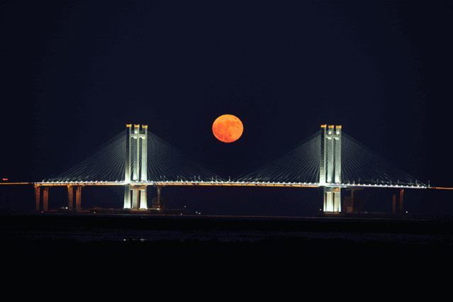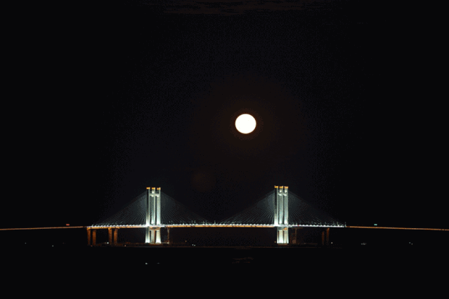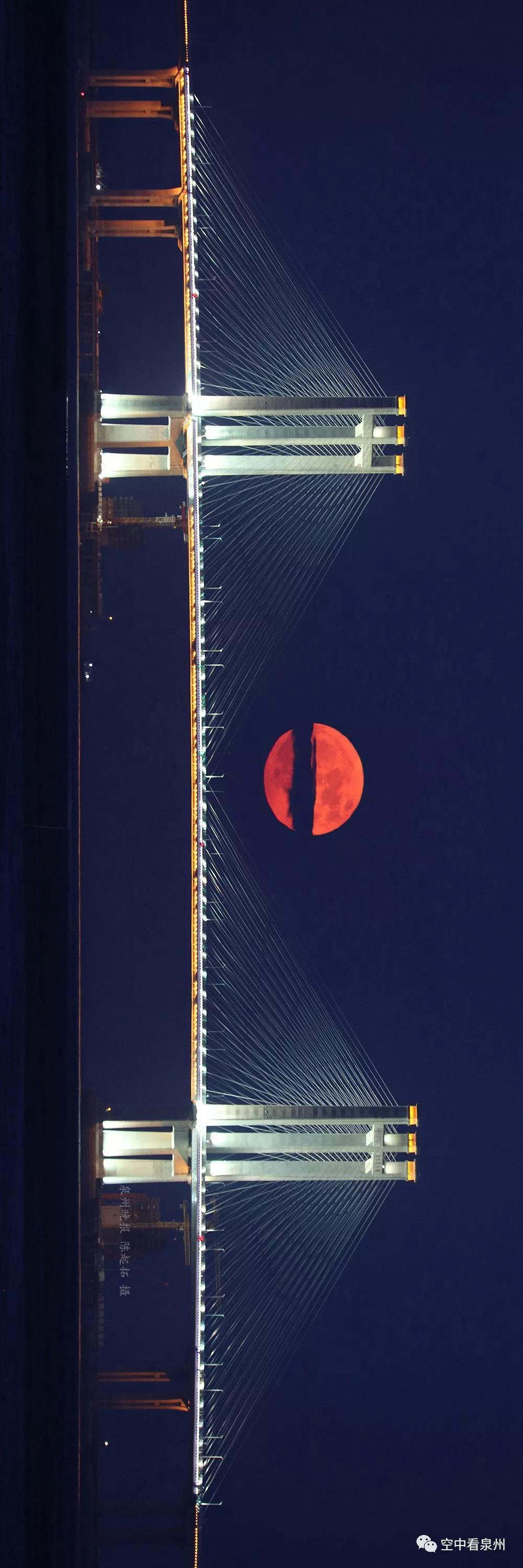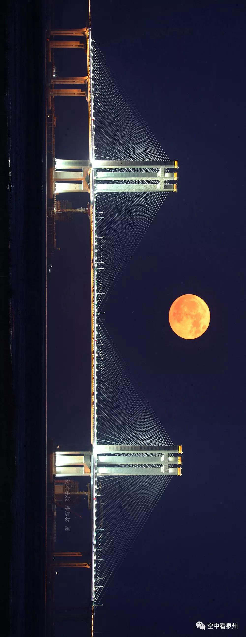 最后,让我们歪一下脖子,看两张高精度的美图,感受这绝美的泉州湾大桥月出美景。