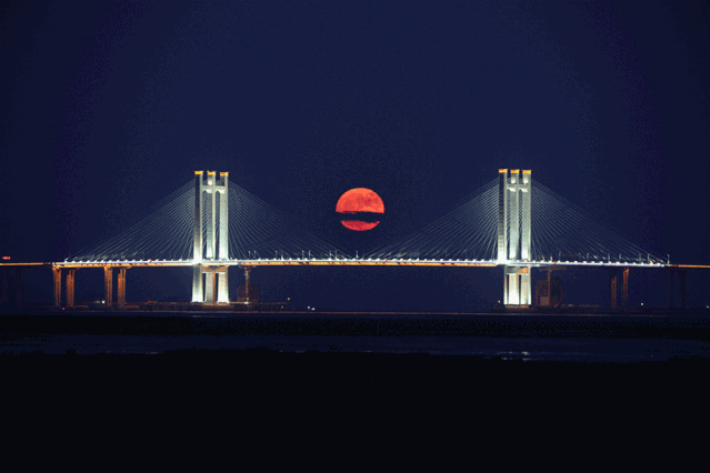 都说十五的月亮十六圆,昨天是中秋节第二天,月亮跃出地平线的角度与昨日有所偏差,但是偏离的位置不大,如果计算准确,应该可以在泉州沿海大通道洋埭村附近路段的江边拍摄“泉州湾大桥主塔月出图”。记者一路追月,回家后将画面整理制作成GIF图片,以供各位朋友欣赏月升的过程。让我们一起来看动图,以及高清全景图。