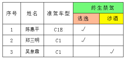泉州网9月21日讯(记者卢珊珊 通讯员赵美缘)21日上午,泉州市交警支队召开新闻通气会,向社会公布2019年8月份以来,被吊销机动车驾驶证且终生禁驾的3名驾驶人名单。据了解,此次3名驾驶人中有2人因交通肇事后逃逸构成犯罪被终生禁驾,1人因醉酒驾驶机动车发生交通事故构成犯罪被终生禁驾。