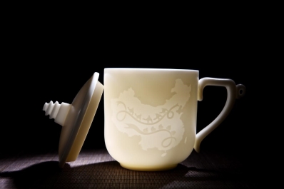 这是一款为新中国成立70周年而设计的纪念杯,杯身采用中国地图结合海上丝绸之路和路上丝绸之路的元素,杯耳采用”70“艺术字体,杯盖运用北京天安门的元素,象征祖国文化底蕴深厚和国运昌盛繁荣。