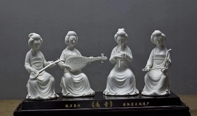 整体以唐朝仕女的形象在表演南音时,各具神韵的画面,南音主要四种乐器尽在其中,无论弹琵琶,还是三弦,或者吹洞箫,拉二弦,无不惟妙惟肖,楚楚动人,仿佛让人们又是到唐朝宫廷音乐的缩影。