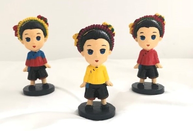 浔埔女阿丽,是代表蟳埔最美阿姨的系列人偶礼品,在独具特色的人偶设计之下,采用纯手工,最原始、最蟳埔的工艺,保证每一位蟳埔阿姨阿丽都是原汁原味的“蟳埔人”。阿丽们的服装均采用手工剪裁缝制而成,布料采用与大裾衫同款材质,同时为了美观,更多采用颜色鲜艳的布料制作服装。阿丽们的发髻也都是通过纯手工盘制而成,搭配模仿蟳埔女最爱的茉莉花、康乃馨、菊花、素馨花等鲜花样貌的塑料簪花围,在阿丽身上展现出最具蟳埔特色的美!