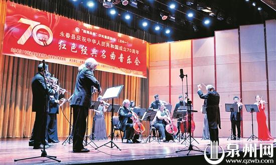9月27日,永春县庆祝中华人民共和国成立70周年·红色经典名曲音乐会举行,加拿大多伦多室内乐团以室内乐的形式让观众感受恢弘大气的中国式情怀。 (林铭珊 冯媛媛 摄)