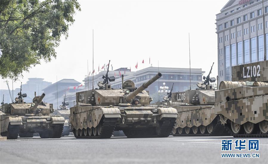 10月1日上午,庆祝中华人民共和国成立70周年大会在北京天安门广场隆重举行。 这是受阅的坦克方队。 新华社记者夏一方摄