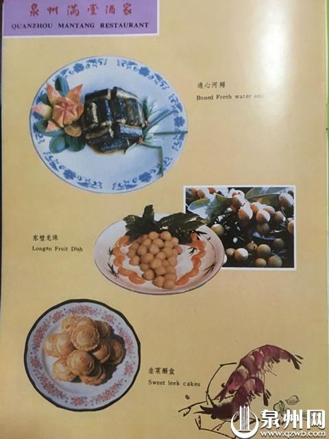 元老级中国烹饪大师程振芳,曾在满堂饭店工作过多年。据他介绍,满堂酒店早在民国时期就已存在,直到上世纪90年代才歇业,它的最大特点就是规模大,技术力量雄厚,擅长烹饪传统正宗的闽南风味佳肴。满堂饭店名菜中的“东璧龙珠”,采用声名在外的开元寺东璧龙眼,挤出果核,填入肉馅后,挂蛋黄液油炸,味道奇鲜,受到泉州市民的普遍称赞。“油焗红蟳”“通心河鳗”色泽艳丽、口味甘美,曾获福建省名优菜一等金杯奖。