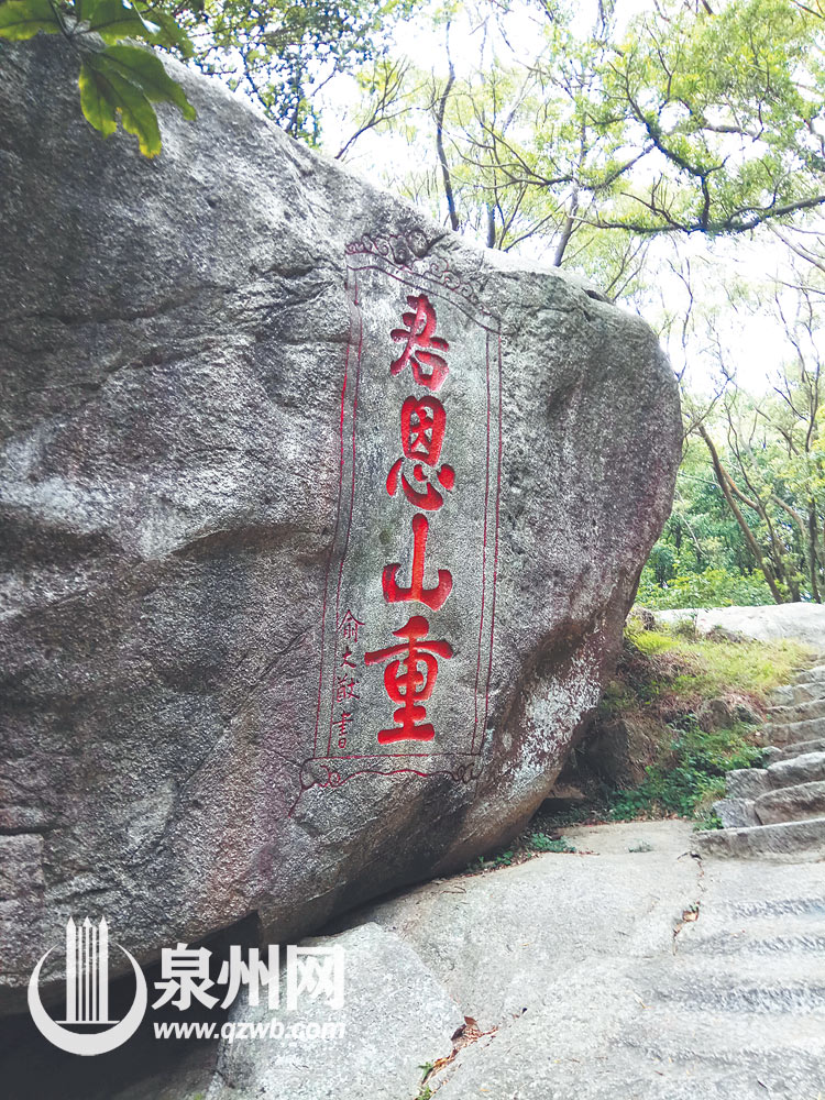 离遵岩不远处有王慎中好友俞大猷留下的“君恩山重”摩崖石刻