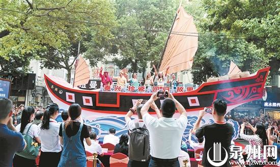昨日,2019中国德化陶瓷博览会暨茶具文化节在位于德化的中国茶具城开幕,并将持续至15日。活动展览面积60000平方米,较上届规模扩大20%,共设立展区9个,总展位635个,参展企业543家。图为“泰兴号”沉船德化珍瓷回归故里巡展文化踩街。