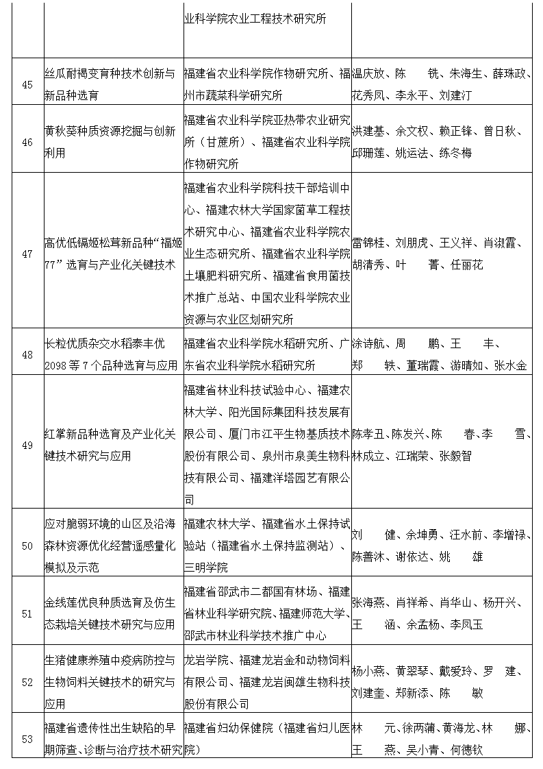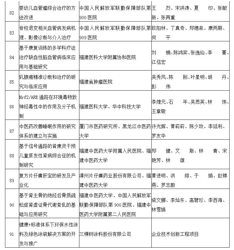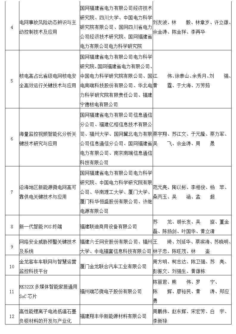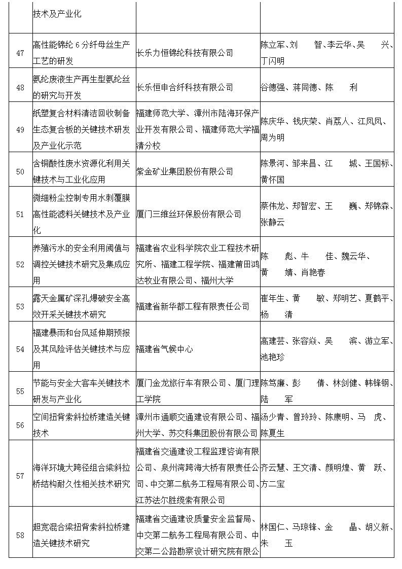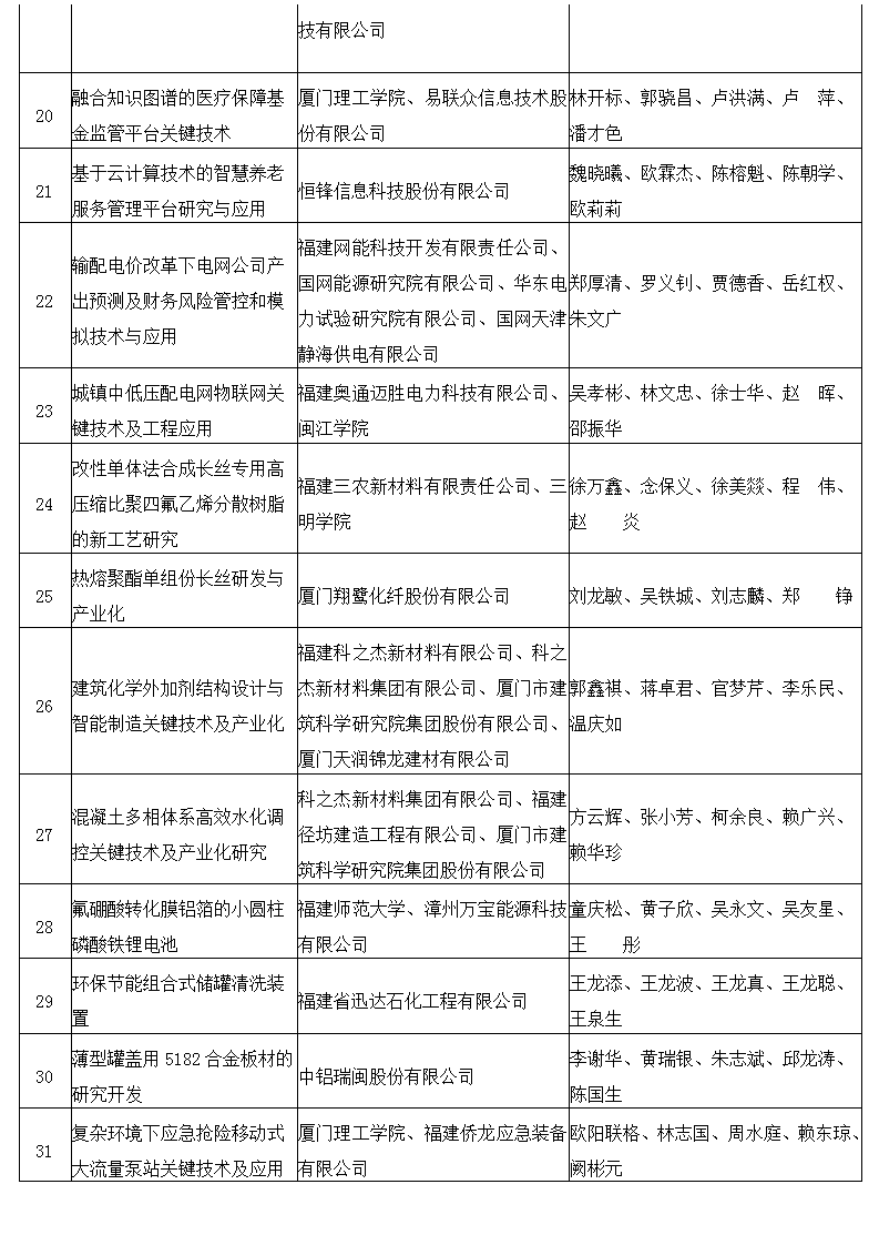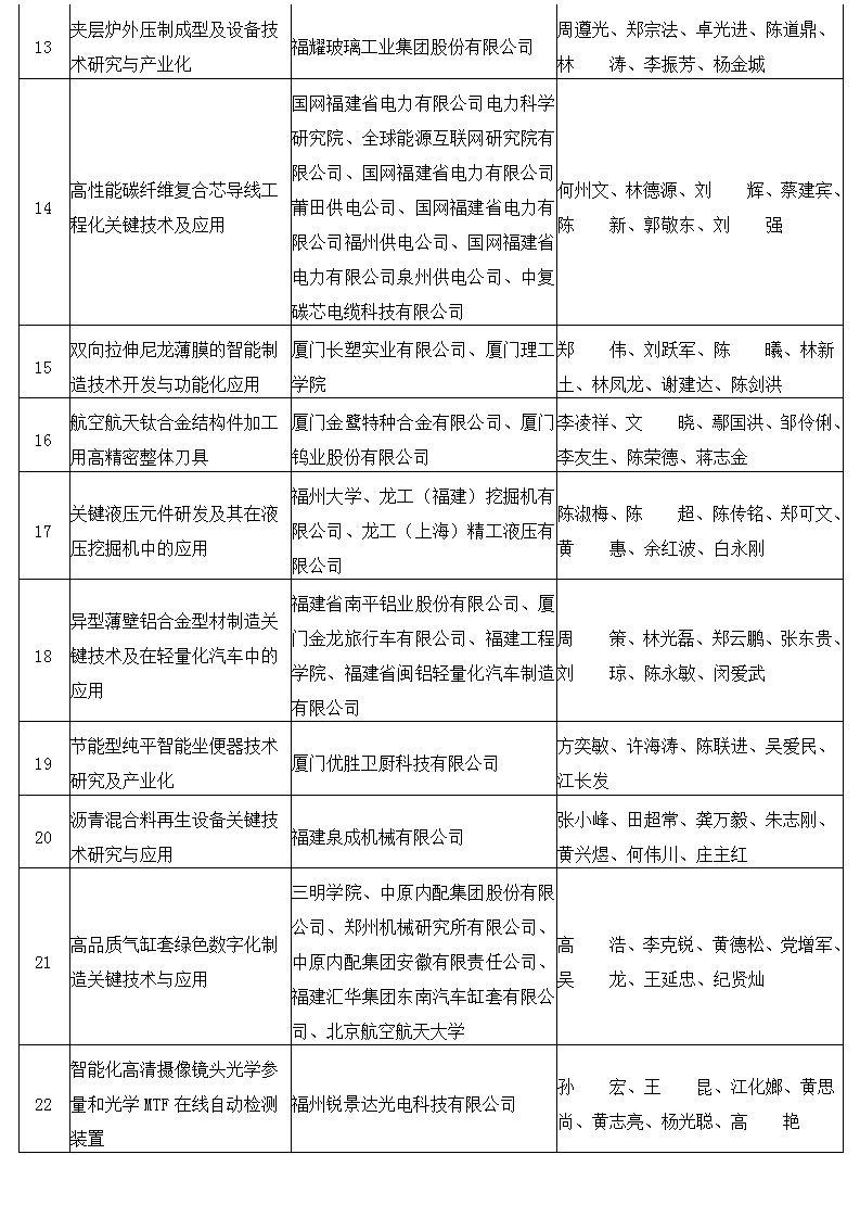 四、授予“超高分辨率液晶显示关键技术开发及产业化”等24项成果福建省科学技术进步奖一等奖,授予“智能光色调控高品质LED健康照明关键技术及其产业化”等58项成果福建省科学技术进步奖二等奖,授予“多功能2.5Gbps双闭环突发模式收发芯片研发与产业化”等91项成果福建省科学技术进步奖三等奖。